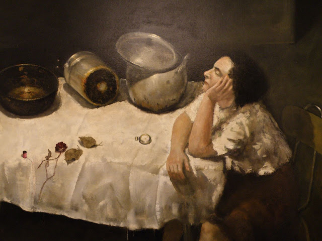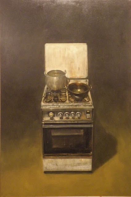 Hyperrealist painter born in Tenerife in 1966. He graduated in Fine Arts and was interested from the beginning by the teaching of artistic expression; that's why he combines his work with the workshop teaching. He has exhibited more than thirty times in both individual and group exhibitions. Author also of posters and illustrations for articles and books, his work has been selected and awarded on numerous occasions and some of his most unique works hang in public and institutional buildings in the Canary Islands and abroad. I share the works of his exhibition "Cacharros / Pottery" held at the Art Gallery La Recova, and photographs are mine (with artist's permission). The lighting of the place and my limited technical possibilities certainly do not do justice to the color, but give an idea of the good work of this Canary artist.