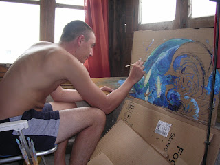 Luego... el tedio de tener que terminar el cuadro, Se pierde el romance, el afecto, la cosa se empieza a complicar, van quedando menos espacios libres, las condicionante de lo colores, el no saber que color poner, ponerlo y ver que no queda bien, que no tiene la gracia que tenia cuando arranque la relación, que no me gusta, que al final para que pinto... Pero superando la amargura, la lucha diaria cuerpo a cuerpo, al final el cuadro se termina, nos miramos, el ya no es aquel a quien quería cuando arranco todo, cambiamos el y yo, pienso siempre que es el ultimo, que nunca mas voy a poder pintar.