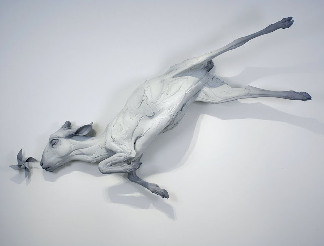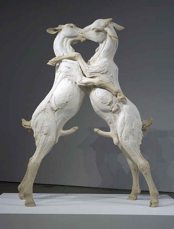 Beth Cavener Stichter nació en Pasadena, California, en 1972. Hija de un biólogo molecular y una profesora de arte y ceramista. Es una artista muy singular que se ha centrado en la expresión de las psique humana a través de imagenes de animales, fundamentalmente liebres, cabras y lobos. Sus esculturas están hechas de gres, trabajado sobre una armadura de metal. No te dejarán indiferente. Los textos que siguen son traducidos de su declaración artística en su sitio web, que vale la pena visitar ya que hay infinidad de trabajos para deleitarse.