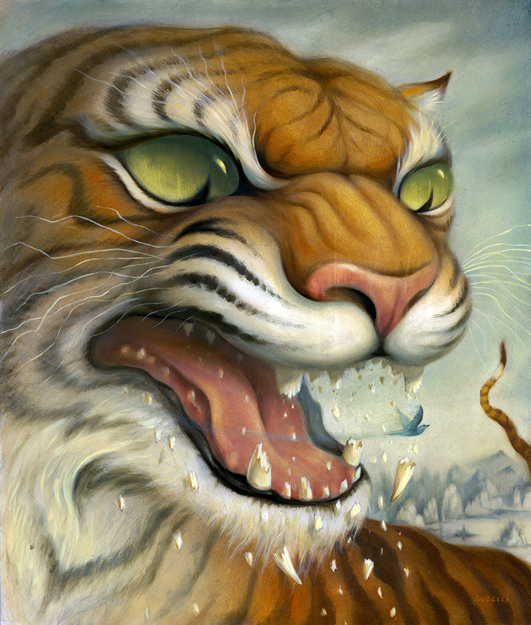 Buzelli es un ilustrador que trabaja en publicidad, portadas para revistas y libros, ilustración de artículos, portadas de CDs. Diseña pósters publicitarios, calendarios, anuncios... Tiene un estilo impecable y entre sus clientes se encuentran Rolling Stone, Playboy, The Village Voice, New York Times, el Zoológico de Seatle, LA Times, Boston Globe, EE.UU. y World News & Report. Se graduó en la Escuela de Diseño de Rhode Island y se trasladó a New York para iniciar su carrera gráfica. Actualmente expone su obra en varias galerías estadounidenses. Más cosas en su sitio web, y en su blog. Para los interesados en profundizar un poco más, una entrevista (en inglés) conducida por Yuko Shimizu (ver más abajo) aquí.