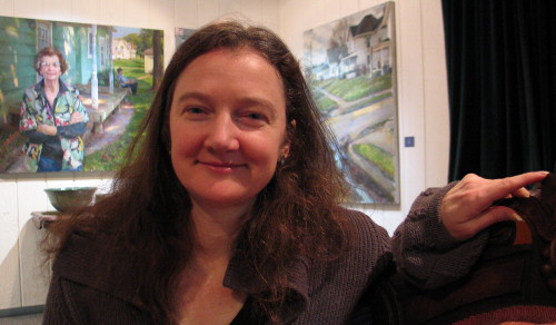 with her paintings "First Light" and "Vigil", 2011. Wikimedia Commons