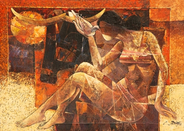 Tariq ocupa una importante posición en la escena de la pintura pakistaní contemporánea. Es pintor, escultor y ceramista y hay un poco de todo en cada medio con el cual está trabajando; la solidez de la escultura y la plasticidad de la cerámica hacen a sus pinturas diferentes y de la misma manera sus esculturas y cerámicas se embeben de esa facilidad "ondulatoria" que permite a un pintor dibujar con los colores para compartir con nosotros lo que pasa por su mente. Texto traducido de aquí. Más obras para disfrutar aquí.