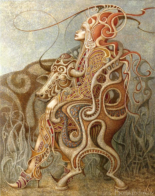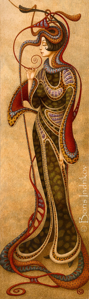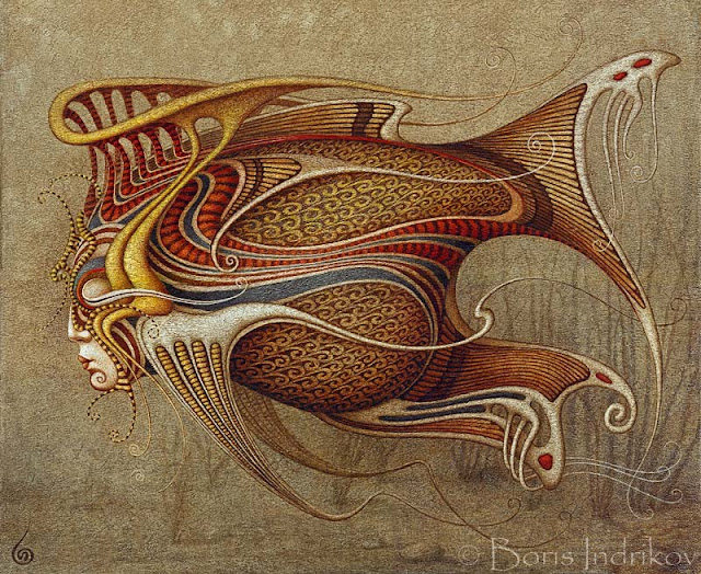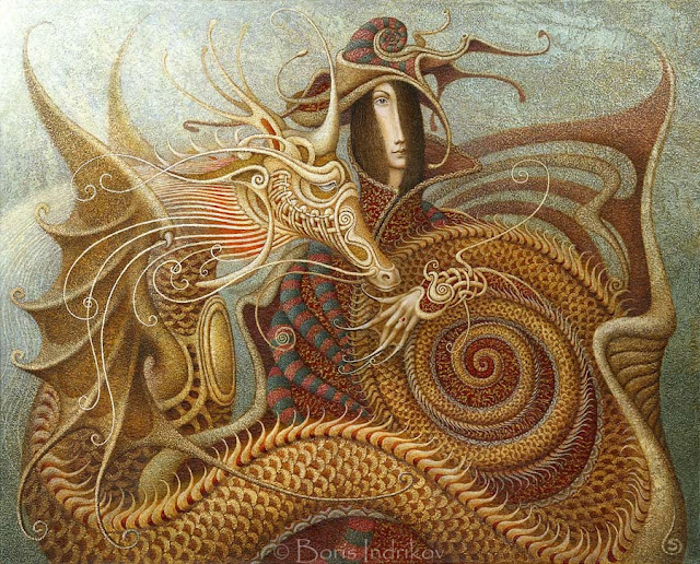 Boris Indrikov was born in Leningrad in 1967 and lives and works in Moscow . From 1991 - 1997 he was a book designer and worked as an illustrator for the popular science magazine "Chemistry and Life".He has been a member of the Creative Union of Artists of Russia and the UNESCO International Federation of Artists since 1998.Has exhibited works at a number of shows in Russia and abroad (Art-Manezh 2002, 2003, Drommar ( Sweden , Nykoping 2004) and others).He currently works in painting, graphic design and small-form plastic. He works mainly in fantastic realism.His pictures are in the HORIZON gallery ( Netherlands ), and private collections in Russia , Sweden , Germany , France , Switzerland , Japan and the United States. Info from his website.