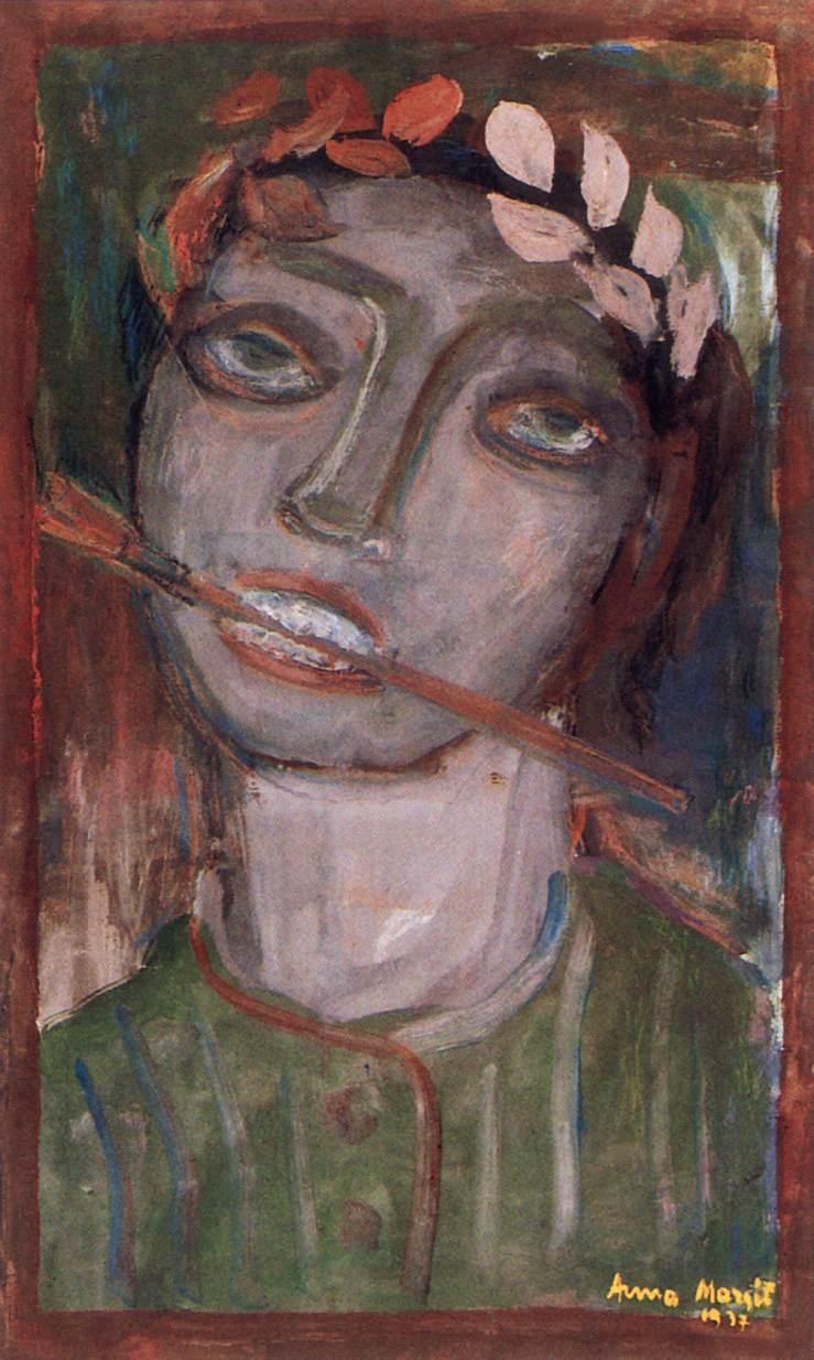 Anna's early period was similar to Imre Ámos's art with lyric presentation with grotesque elements which characterize her paintings.