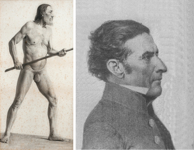 Izq./ Left: "Estudio de un hombre / Study of a Man", carbonilla sobre papel, 55 x 28 cm.