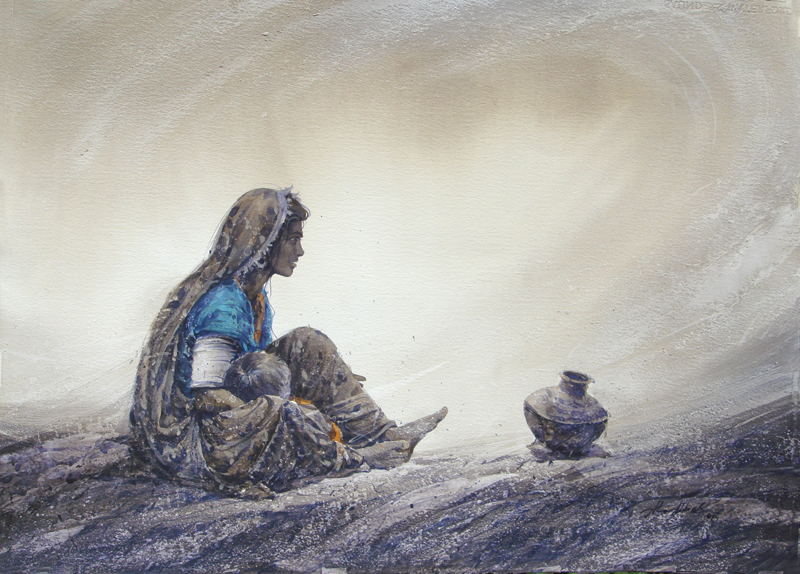 Abbas, in his paintings, has portrayed the living style of gypsies in rural Sindh. He has captured with vivacity and heart-felt feelings their moment-to-moment existence.