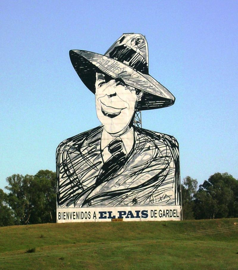 His biggest caricature is the "Gardelazo" in Tacuarembó, a gigantography 26 m tall in honor to tango singer Carlos Gardel in the place where he was born.