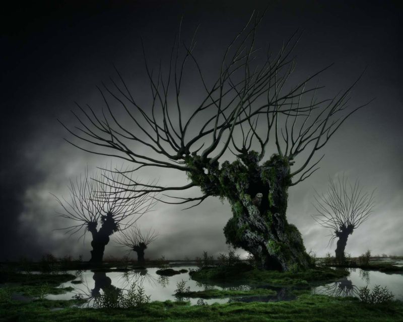 Sus impresiones son imágenes reales o escenas imaginadas, resultado de elaboradas construcciones en estudio que requieren un meticuloso trabajo artesanal y gran habilidad en el manejo de la luz. Consigue unos efectos realmente fantásticos. Como es habitual, recomiendo pasarse por su sitio web para ver más cosas suyas.