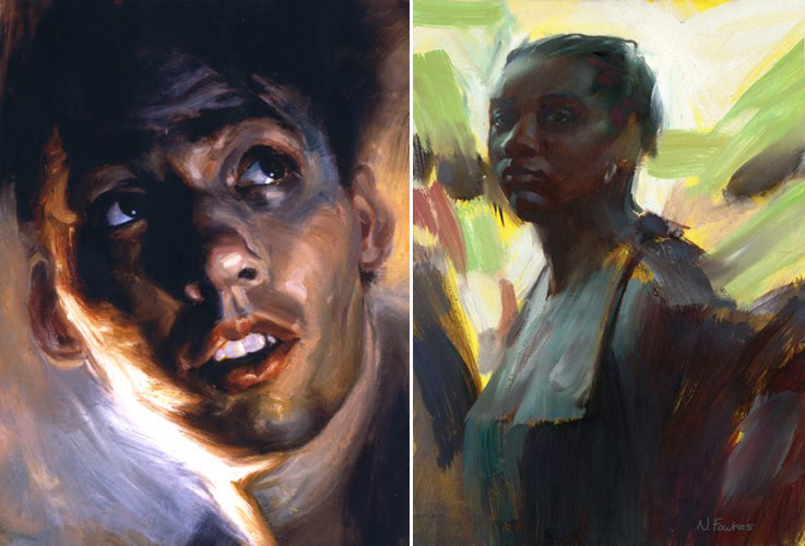 Izq./ Left: "Esto (izquierda) es algo que hice para mi clase de pintura de cabezas cuando estudiaba en el Art Center en Pasadena. Recuerdo esta con cariño porque tras varias pinturas absolutamente desastrosas, finalmente empecé a comprender cómo controlar el color y los valores. /