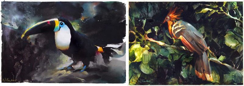 Izq./ Left: "Tucán", acuarela a partir de unas fotografías tomadas en Costa Rica /