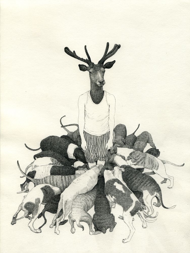 "John Actéon Deer", tinta y acuarela sobre papel / ink and watercolor on paper, 28,2 x 21 cm., 2010