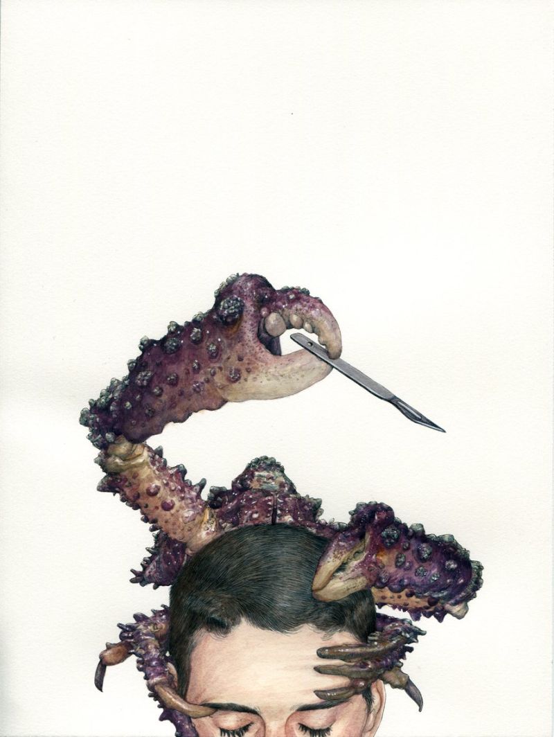 "Poulper / Pulpo / Octopus", tinta y acuarela sobre papel / ink and watercolor on paper, 28,2 x 21 cm., 2010