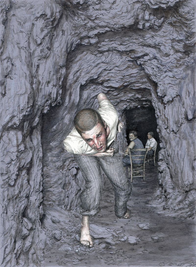 R: Dibujo compulsivamente. El deseo normalmente comienza con un detalle. Para un dibujo de un gran elefante, todo comienza con la oreja. ¡Sólo quiero dibujar la oreja de un elefante! No puedo dibujar bien si el deseo no está allí. El detalle provee entonces la estructura para el resto. Quiero que el realismo me permita hacer cosas completamente irreales, como hablar con mi abuelo, por ejemplo, que ya no está con nosotros, o volar a espaldas de una ardilla gigante...