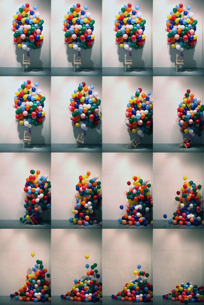 Balloons, wood, mixed media, installation, video - stills © MyeongBeom Kim