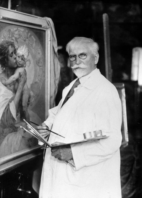 Alfons Mucha, pintanto "Madre y niño" / painting "Mother & Child", 1936. Link