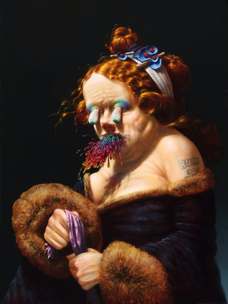 "I think my first favorites were comic book artists like Todd McFarlane. Around that same time I discovered HR Giger via the Aliens movie. After that I discovered the artists of the early surrealist movement. I have so many favorite artists nowadays: Nicole Duennebier, Ryan Riss, Judy Pfaff, Jenny Morgan, Barnaby Furnas, Skinner, Erik Parker, Judy Fox, Kenny Scharf, Ryan Schneider, Amir Fallah, Martin Wittfooth, Gregory Jacobsen, Sinisa Kukec, Liz Craft, Wayne White, Ryan Travis Christian, Seamus Conley, Fulvio di Piazza, Mark Dean Veca, Tomoe Gokita, Robin Williams, Barnaby Whitfield, Julie Heffernan, Nicola Verlato, David Altmejd, Robert Hardgrave, Kim Keever, Aaron Johnson, Brendan Danielsson, Wangechi Mutu jeez, so many, I could go on and on. I am attracted to grotesque, colorful, spectacular, and technically ambitious work that is more emotional than intellectual."