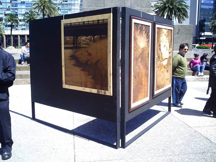 En este video, realizado por la hija de Martín Núñez, un artista uruguayo dedicado al pirograbado cuya obra pudimos ver en "El Hurgador" en un post de noviembre de 2012, podemos ver la transformación de madera desechada, común y corriente, en piezas de interés, con calidad, a bajo costo y en poco tiempo, hasta llegar a una muestra de las obras terminadas en la Plaza Independencia de Montevideo, Uruguay.