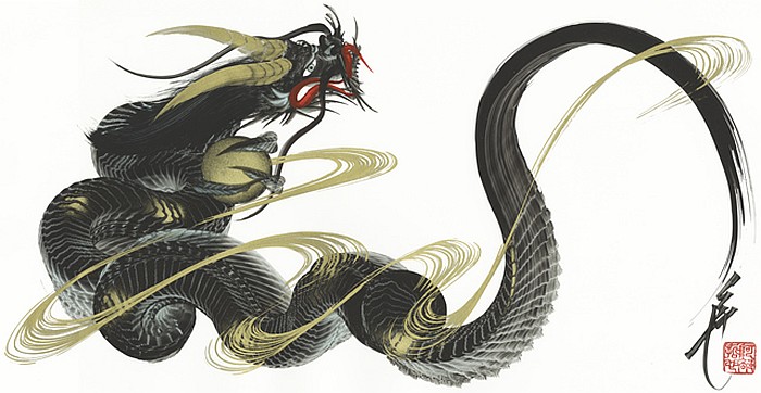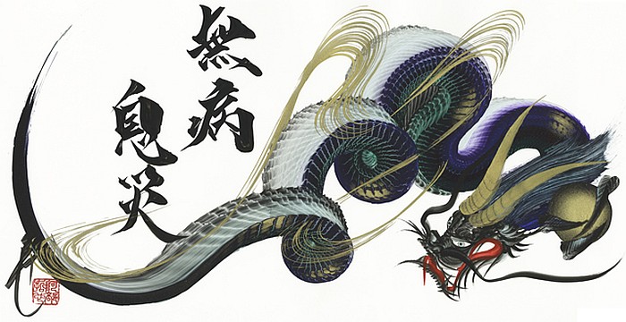 In the first post of this series, I shared a video of a realistic snake, painted in a single brushstroke. With a similar technique these fantastic dragons are made in Japan.