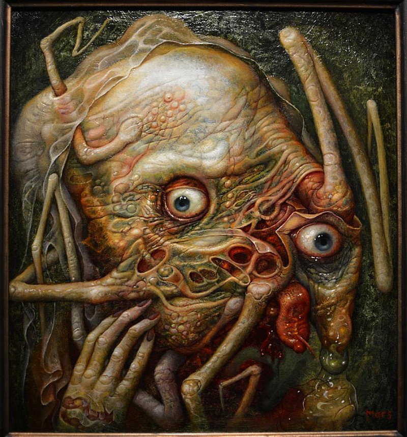 "Autointervención / Auto-Intervention", óleo sobre panel / oil on panel, 40" x 18", 2009 © Chris Mars