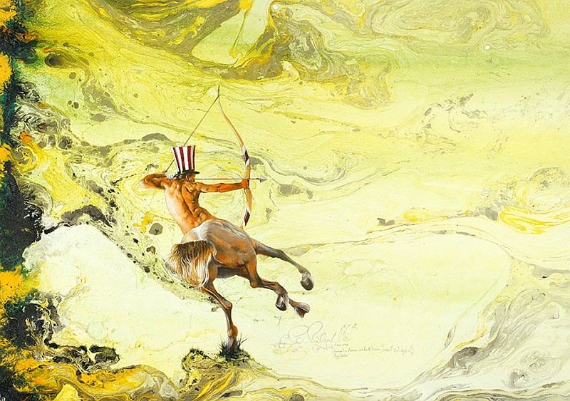 "Sagitario / Sagittarius", óleo y técnica mixta sobre papel, sobre tabla /