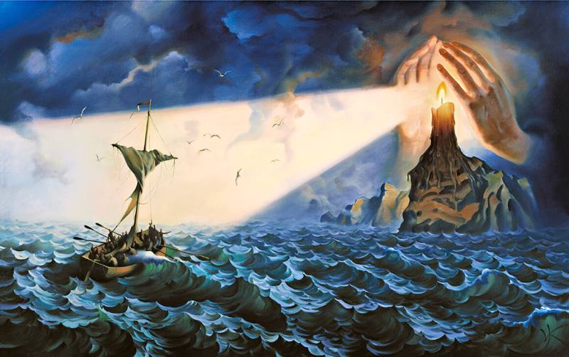 "Partida del Barco Alado / Departure of the Winged Ship", óleo sobre lienzo / oil on canvas, 31" x 39", 2000