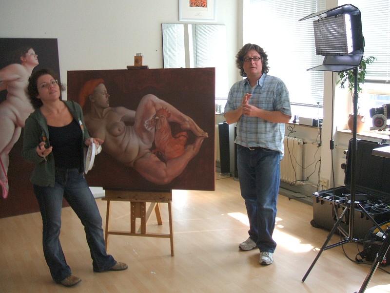 Lilli with Steffen Rolla in front of her work "Hahn II / Cock II" in 2009 during the making of the film about the artist you can see (in German, no subs) here.