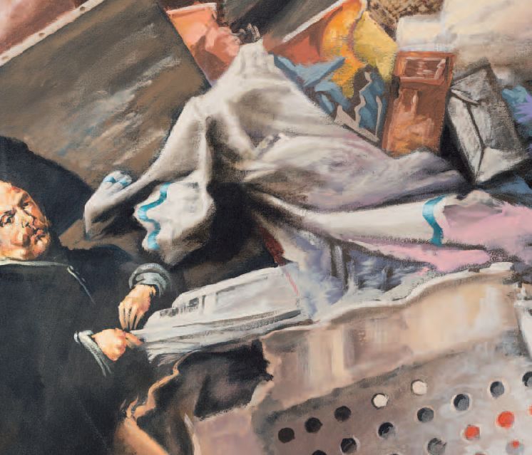 «I appeal [to classical painting] on one side by that playful part they have. On the other side is a bit like a small sign of protest against what was at one time which led to postmodernism, it was like putting a hand back into a library and get two periods in history no matter where they were or anything. And I grew up in respect for they did before because they were the ones who gave us the motives, or the ability to do that, because when you see a work, for example Rembrandt, the guy, just seeing the picture, it takes you at least 50 years of your work experimenting to see something a little bit close to that. Of course for me Rembrandt, I think conclusively that he was not human, it must be a Martian or something like that, because he was a guy... when I saw [his works] in the Rijksmuseum I said, ok, this guy is not human, the others look more within reach, but there are some in art story that they are ...