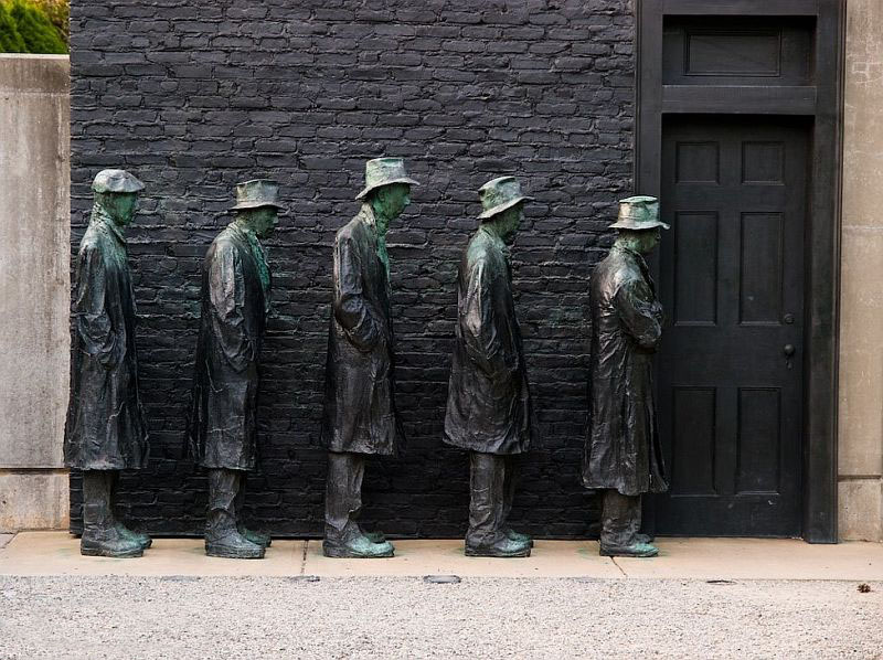 "Cola del pan durante la depresión / Depression Bread Line", bronce / bronze, 1991.