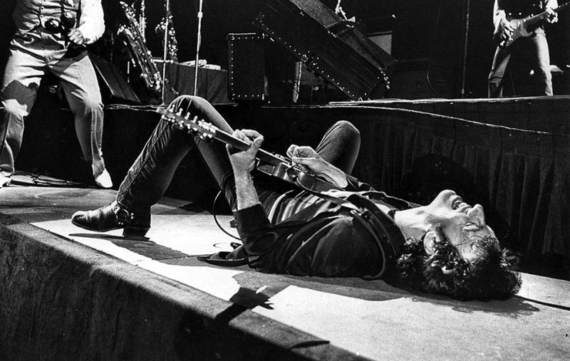 "Bruce Springsteen en el suelo durante un concierto de 3 horas en el Forum, Los Ángeles, California /