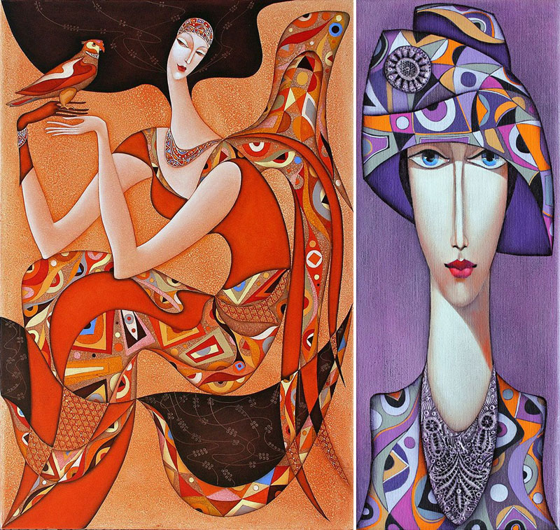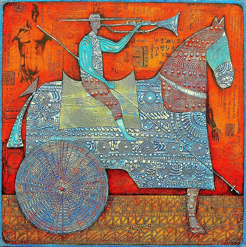 Each painting is an undertow which sucks the spectator into the multifaceted world of the artist; it commands him to look behind the forms and decorative adornments in order to admit oneself to a journey of continuous discoveries.