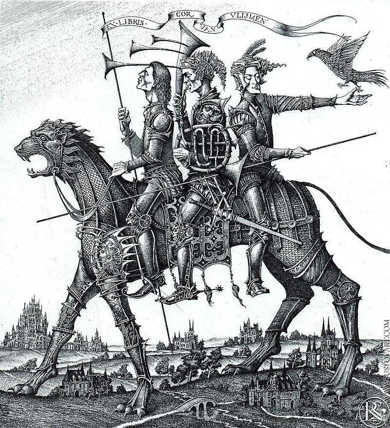 This is the first of three posts (the second one here) I'll publish about the work of Roman Sustov, a Belarusian Master of several graphic techniques, who has created an extremely beautiful body of work in which the bookplates represent the main group, and are sought after by collectors all over the world.