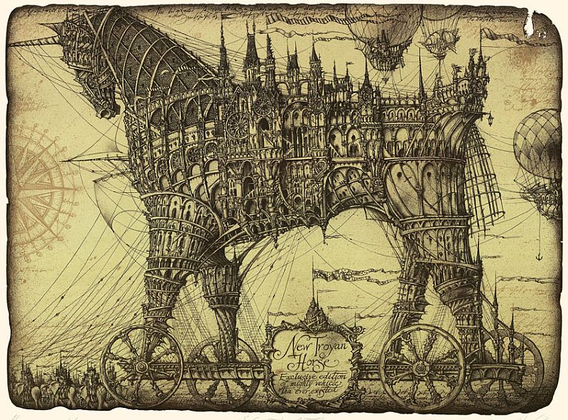 "Nueva caballo de Troya / New Trojan Horse", litografía / lithography, 44 x 60 cm., 2013