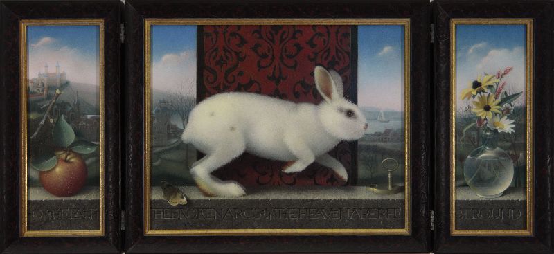 «Initially I was surprised to hear my bunnies described as "cute". I paint rabbits for the same reason I paint children: I like the geometry in their form, their outfits, and the mix of innocence and cunning in their natures. However if I step back from what I love about painting rabbits, I concede the point: they are cute.