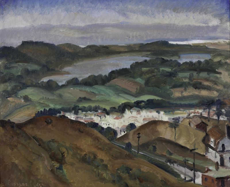 In 1901 Henri Le Fauconnier moved from northern France to Paris, where he studied law, then attended painting classes in the studio of Jean-Paul Laurens, then in the Academie Julian. He exhibited at the Salon des Indépendants in 1904 and 1905, implementing bold colors in line with Henri Matisse. He moved to Brittany in 1907 and painted the rocky landscapes of Ploumanac'h in a proto-Cubist style characterized by chastened tones of brown and greens with thick outlines delimiting the simplified forms.
