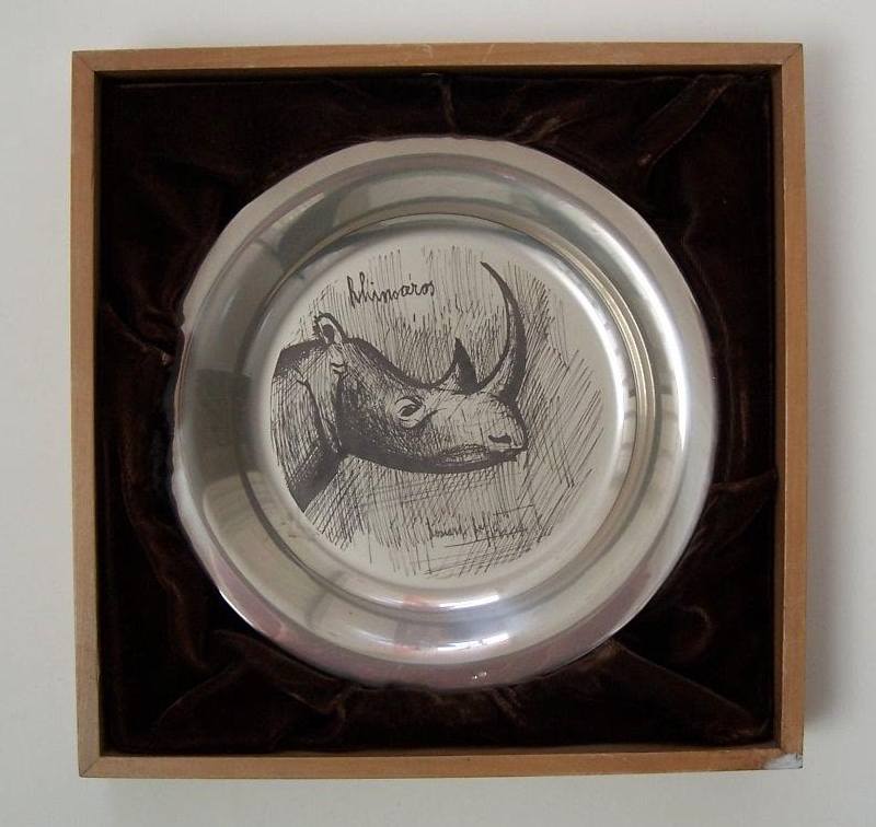 "Rhinocéros / Rinoceronte / Rhino", Placa de plata esterlina grabada con punta seca /